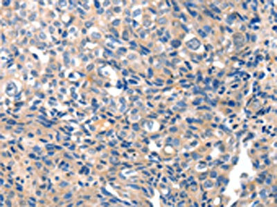 The image on the left is immunohistochemistry of paraffin-embedded Human ovarian cancer tissue using CSB-PA060739(GRIN2D Antibody) at dilution 1/10, on the right is treated with synthetic peptide. (Original magnification: ×200)