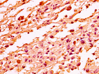 IHC image of CSB-PA010087OA101nme1HU diluted at 1:50 and staining in paraffin-embedded human melanoma performed on a Leica BondTM system. After dewaxing and hydration, antigen retrieval was mediated by high pressure in a citrate buffer (pH 6.0). Section was blocked with 10% normal goat serum 30min at RT. Then primary antibody (1% BSA) was incubated at 4°C overnight. The primary is detected by a biotinylated secondary antibody and visualized using an HRP conjugated SP system.