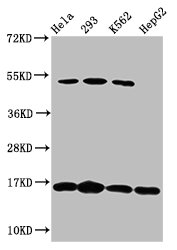 Positive WB detected in: Hela whole cell lysate, 293 whole cell lysate, K562 whole cell lysate, HepG2 whole cell lysate