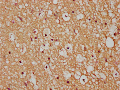 IHC image of CSB-PA878945LA01HU diluted at 1:200 and staining in paraffin-embedded human brain tissue performed on a Leica BondTM system. After dewaxing and hydration, antigen retrieval was mediated by high pressure in a citrate buffer (pH 6.0). Section was blocked with 10% normal goat serum 30min at RT. Then primary antibody (1% BSA) was incubated at 4°C overnight. The primary is detected by a biotinylated secondary antibody and visualized using an HRP conjugated SP system.