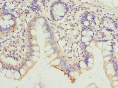 Immunohistochemistry of paraffin-embedded human small intestine tissue using CSB-PA883592LA01HU at dilution of 1:100