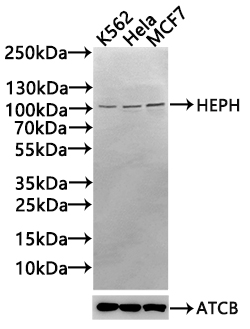 Positive WB detected in: K562 whole cell lysate(30μg), Hela whole cell lysate(30μg), MCF7 whole cell lysate(30μg)