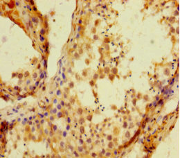 Immunohistochemistry of paraffin-embedded human testis tissue using CSB-PA010378HA01HU at dilution of 1:100