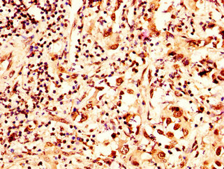 IHC image of CSB-PA010389OA36nsucHU diluted at 1:50 and staining in paraffin-embedded human liver cancer performed on a Leica BondTM system. After dewaxing and hydration, antigen retrieval was mediated by high pressure in a citrate buffer (pH 6.0). Section was blocked with 10% normal goat serum 30min at RT. Then primary antibody (1% BSA) was incubated at 4°C overnight. The primary is detected by a biotinylated secondary antibody and visualized using an HRP conjugated SP system.