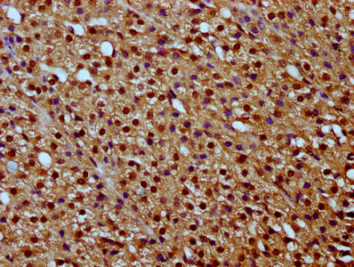 IHC image of CSB-PA010403OA05nforHU diluted at 1:20 and staining in paraffin-embedded human adrenal gland tissue performed on a Leica BondTM system. After dewaxing and hydration, antigen retrieval was mediated by high pressure in a citrate buffer (pH 6.0). Section was blocked with 10% normal goat serum 30min at RT. Then primary antibody (1% BSA) was incubated at 4°C overnight. The primary is detected by a biotinylated secondary antibody and visualized using an HRP conjugated SP system.