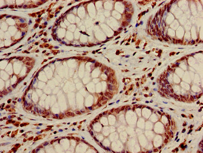Immunohistochemistry of paraffin-embedded human colon cancer using CSB-PA010418OA23nacHU at dilution of 1:100