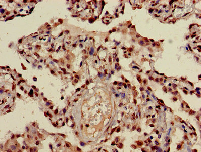 Immunohistochemistry of paraffin-embedded human lung cancer using CSB-PA010418OA23nacHU at dilution of 1:100