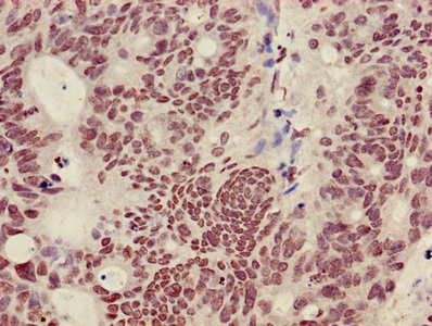 Immunohistochemistry of paraffin-embedded human colon cancer using CSB-PA010418OA36nme2HU at dilution of 1:100