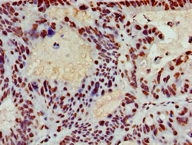 Immunohistochemistry of paraffin-embedded human colon cancer using CSB-PA010418PA04nme3HU at dilution of 1:100