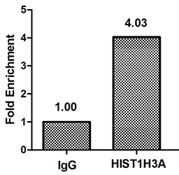 Chromatin Immunoprecipitation Hela (4*106) were treated with Micrococcal Nuclease, sonicated, and immunoprecipitated with 8µg anti-HIST1H3A (CSB-PA010418PA04nme2HU) or a control normal rabbit IgG. The resulting ChIP DNA was quantified using real-time PCR with primers against the β-Globin promoter.