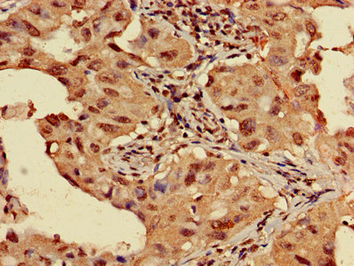 Immunohistochemistry of paraffin-embedded human lung cancer using CSB-PA010418OA04nme2HU at dilution of 1:100