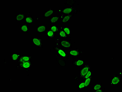 Immunofluorescent analysis of Hela cells using CSB-PA010429NA16nacHU at dilution of 1:100 and Alexa Fluor 488-congugated AffiniPure Goat Anti-Rabbit IgG(H+L)