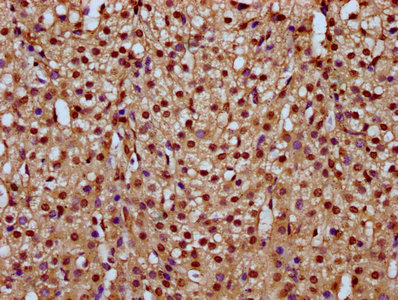 IHC image of CSB-PA010429OA77nbutHU diluted at 1:20 and staining in paraffin-embedded human adrenal gland tissue performed on a Leica BondTM system. After dewaxing and hydration, antigen retrieval was mediated by high pressure in a citrate buffer (pH 6.0). Section was blocked with 10% normal goat serum 30min at RT. Then primary antibody (1% BSA) was incubated at 4°C overnight. The primary is detected by a biotinylated secondary antibody and visualized using an HRP conjugated SP system.