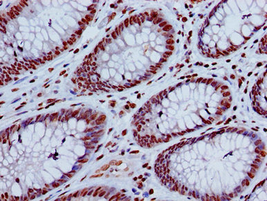 Immunohistochemistry of paraffin-embedded human colon cancer using CSB-PA010429OA08nacHU at dilution of 1:100