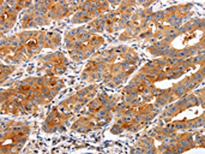 • The image on the left is immunohistochemistry of paraffin-embedded Human liver cancer tissue using CSB-PA411062(TIMP2 Antibody) at dilution 1/20, on the right is treated with fusion protein. (Original magnification: ×200)