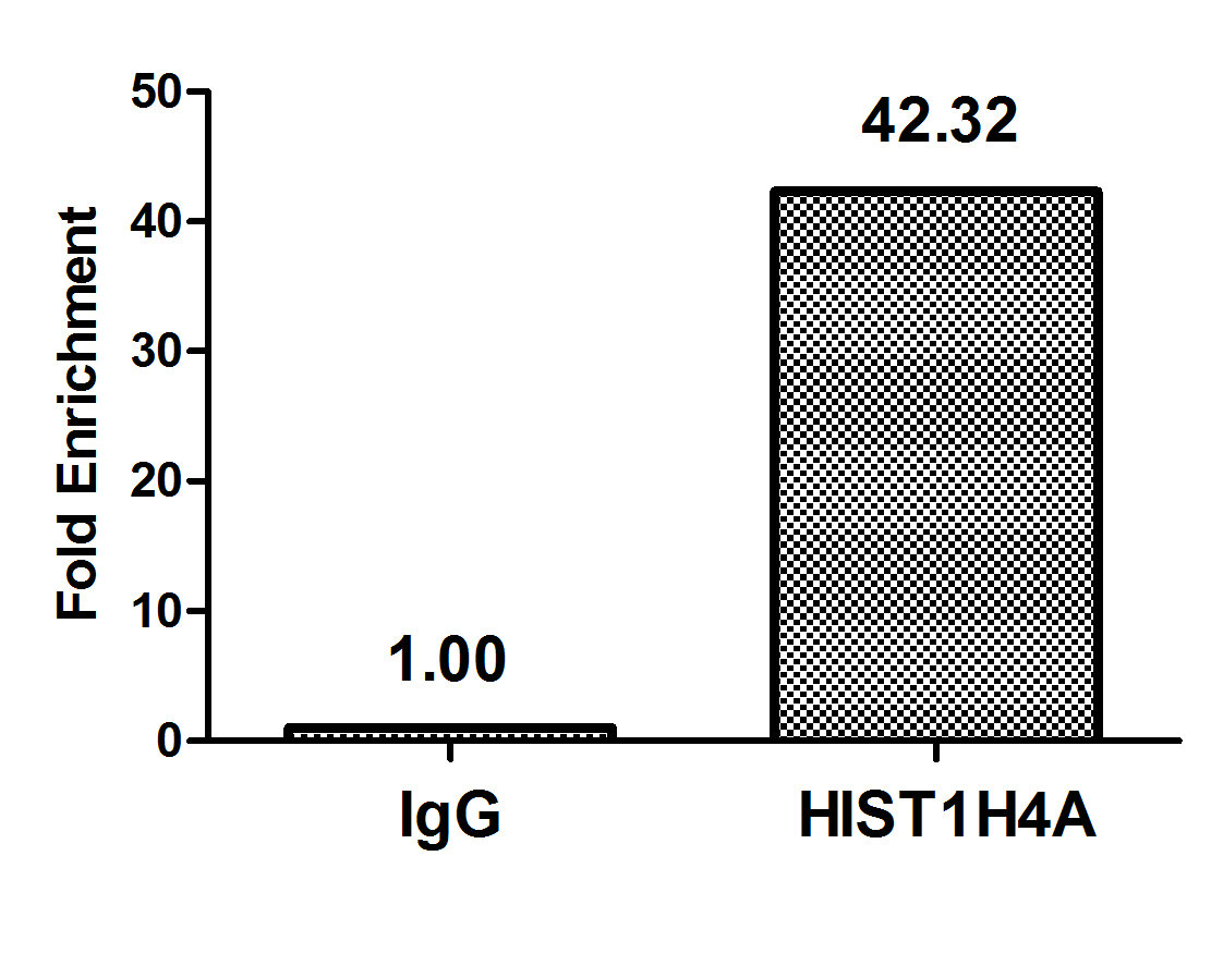 Chromatin Immunoprecipitation Hela (4*106) were treated with Micrococcal Nuclease, sonicated, and immunoprecipitated with 5µg anti-HIST1H4A (CSB-PA010429OA01nphHU) or a control normal rabbit IgG. The resulting ChIP DNA was quantified using real-time PCR with primers against the β-Globin promoter.