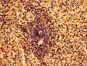 Immunohistochemistry of paraffin-embedded human spleen tissue using CSB-PA642773LA01HU at dilution of 1:100