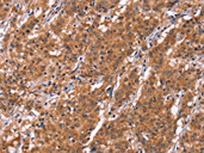 The image on the left is immunohistochemistry of paraffin-embedded Human gastric cancer tissue using CSB-PA791283(HLTF Antibody) at dilution 1/30, on the right is treated with synthetic peptide. (Original magnification: ×200)