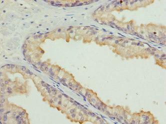 Immunohistochemistry of paraffin-embedded human prostate cancer using CSB-PA01604A0Rb at dilution of 1:100