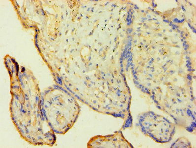 Immunohistochemistry of paraffin-embedded human placenta tissue using CSB-PA010609HA01HU at dilution of 1:100