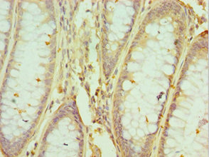 Immunohistochemistry of paraffin-embedded human colon cancer using CSB-PA010613ESR1HU at dilution of 1:100
