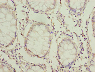 Immunohistochemistry of paraffin-embedded human colon cancer using CSB-PA891526LA01HU at dilution of 1:100