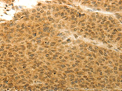 The image on the left is immunohistochemistry of paraffin-embedded Human colon cancer tissue using CSB-PA090969(HOXA4 Antibody) at dilution 1/20, on the right is treated with synthetic peptide. (Original magnification: ×200)