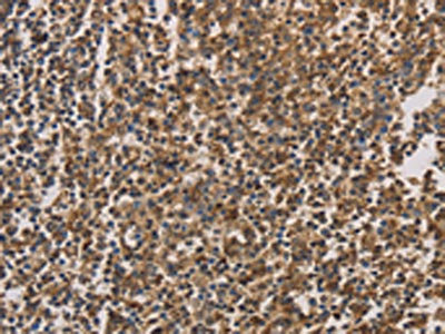 The image on the left is immunohistochemistry of paraffin-embedded Human tonsil tissue using CSB-PA249679(HSF1 Antibody) at dilution 1/20, on the right is treated with fusion protein. (Original magnification: ×200)
