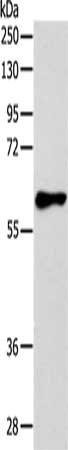 Gel: 10%SDS-PAGE, Lysate: 40 μg, Lane: Mouse intestinum tenue tissue, Primary antibody: CSB-PA107614(HTR3A Antibody) at dilution 1/375, Secondary antibody: Goat anti rabbit IgG at 1/8000 dilution, Exposure time: 1 minute