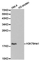 免疫原:A synthetic methylated peptide corresponding to residues surrounding K79 of Human histone H3