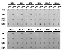 免疫原:A synthetic methylated peptide corresponding to residues surrounding K9 of Human histone H3