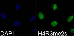 免疫原:A synthetic peptide corresponding to the amino terminus of histone H4 in which Arg3 is di-methylated.