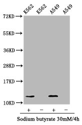 Positive WB detected in: K562 whole cell lysate, A549 whole cell lysate (treated with 30mM sodium butyrate for 4h or not)