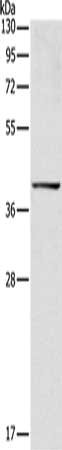Gel: 10%SDS-PAGE, Lysate: 40 μg, Lane: Mouse eyes tissue, Primary antibody: CSB-PA597290(IDH3B Antibody) at dilution 1/240, Secondary antibody: Goat anti rabbit IgG at 1/8000 dilution, Exposure time: 10 seconds