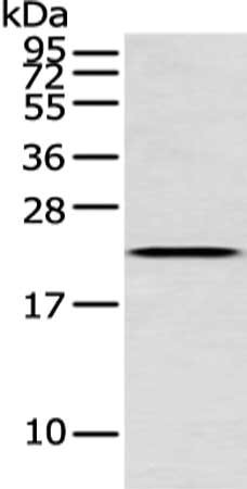 Gel: 12%SDS-PAGE, Lysate: 40 μg, Lane: Human fetal liver tissue, Primary antibody: CSB-PA995781(IFNG Antibody) at dilution 1/250 dilution, Secondary antibody: Goat anti rabbit IgG at 1/8000 dilution, Exposure time: 1 minute
