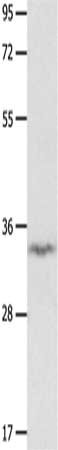 Gel: 10%SDS-PAGE, Lysate: 40 μg, Lane: Mouse brain tissue, Primary antibody: CSB-PA439452(IGFBP7 Antibody) at dilution 1/400, Secondary antibody: Goat anti rabbit IgG at 1/8000 dilution, Exposure time: 1 minute