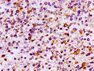 IHC image of CSB-PA600091LA01HU diluted at 1:100 and staining in paraffin-embedded human glioma performed on a Leica BondTM system. After dewaxing and hydration, antigen retrieval was mediated by high pressure in a citrate buffer (pH 6.0). Section was blocked with 10% normal goat serum 30min at RT. Then primary antibody (1% BSA) was incubated at 4°C overnight. The primary is detected by a biotinylated secondary antibody and visualized using an HRP conjugated SP system.
