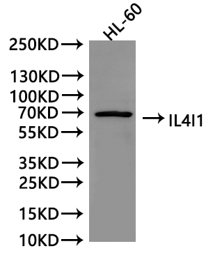 The recombinant human L-amino-acid oxidase protein (139-339aa) was injected into a rabbit to trigger an immune response leading to the generation of antibodies against IL4I1. The IL4I1 polyclonal antibody was isolated and purified from the rabbit's serum through protein G affinity chromatography. Its purity exceeds 95%. This rabbit anti-human IL4I1 polyclonal antibody was tested in the ELISA, WB, and IHC. The non-conjugated IgG was purified by protein G affinity chromatography and reached up to 95% in purity. It shows reactivity with the human and mouse IL4I1 proteins and may be used to detect the endogenous levels of IL4I1 protein.