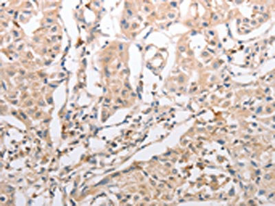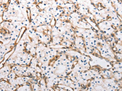 The image on the left is immunohistochemistry of paraffin-embedded Human renal cancer tissue using CSB-PA980278(INA Antibody) at dilution 1/30, on the right is treated with synthetic peptide. (Original magnification: ×200)