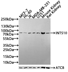 別名:INTS10 antibody; C8orf35 antibody; Integrator complex subunit 10 antibody; Int10 antibody