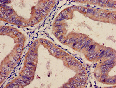 Immunohistochemistry of paraffin-embedded human endometrial cancer using CSB-PA011864LA01HU at dilution of 1:100