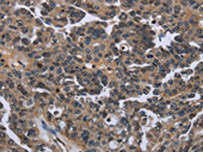 The image on the left is immunohistochemistry of paraffin-embedded Human ovarian cancer tissue using CSB-PA939663(ITGAE Antibody) at dilution 1/50, on the right is treated with fusion protein. (Original magnification: ×200)