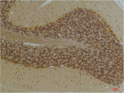 Immunohistochemical analysis of paraffin-embedded Mouse BrainTissue using KCNN2(SK2) Rabbit pAb diluted at 1:200.