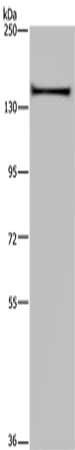 Gel: 6%SDS-PAGE, Lysate: 40 μg, Lane: A549 cells, Primary antibody: CSB-PA175695(KIF1C Antibody) at dilution 1/200, Secondary antibody: Goat anti rabbit IgG at 1/8000 dilution, Exposure time: 20 seconds