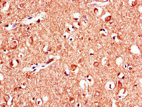 Immunohistochemistry of paraffin-embedded human brain tissue using CSB-PA12729A0Rb at dilution of 1:100