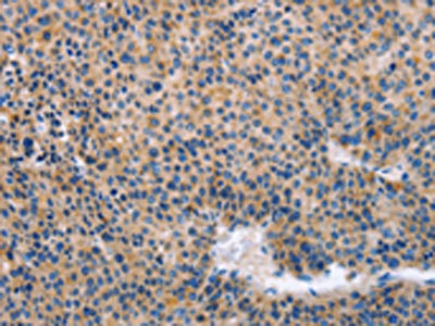 The image on the left is immunohistochemistry of paraffin-embedded Human breast cancer tissue using CSB-PA103566(KLF15 Antibody) at dilution 1/30, on the right is treated with fusion protein. (Original magnification: ×200)