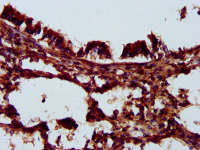 IHC image of CSB-PA868375LA01HU diluted at 1:200 and staining in paraffin-embedded human lung tissue performed on a Leica BondTM system. After dewaxing and hydration, antigen retrieval was mediated by high pressure in a citrate buffer (pH 6.0). Section was blocked with 10% normal goat serum 30min at RT. Then primary antibody (1% BSA) was incubated at 4°C overnight. The primary is detected by a biotinylated secondary antibody and visualized using an HRP conjugated SP system.
