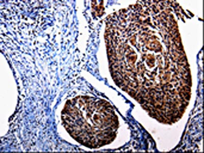 The image is immunohistochemistry of paraffin-embedded Human cervical cancer tissue using CSB-PA554992(KLK3 Antibody) at dilution 1/25. (Original magnification: ×200)