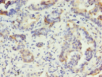 Immunohistochemistry of paraffin-embedded human lung cancer using CSB-PA012504LA01HU at dilution of 1:100