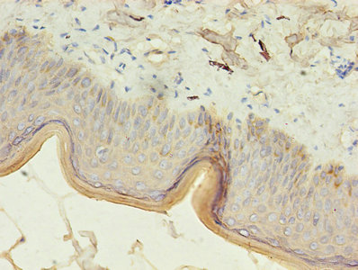 Immunohistochemistry of paraffin-embedded human skin tissue using CSB-PA012504LA01HU at dilution of 1:100